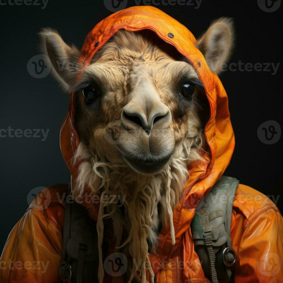 AI generated Night View Photo Realistic Camel in Man Suit Looking at Camera with Paint Coat Generative AI Pro Photo