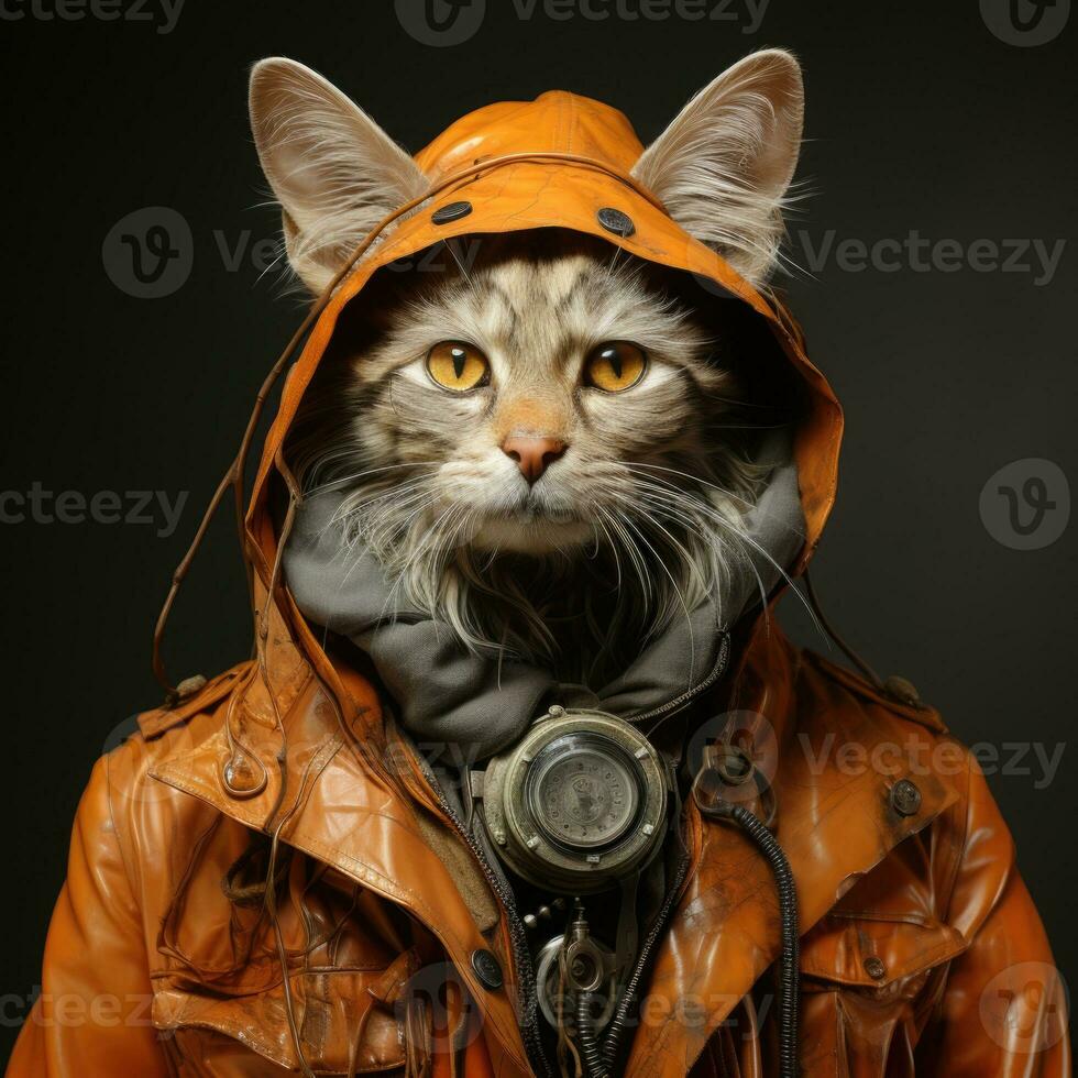 AI generated Animal in Man Suit Realistic Image of Cat Looking at Camera in Night View Generative AI Pro Photo