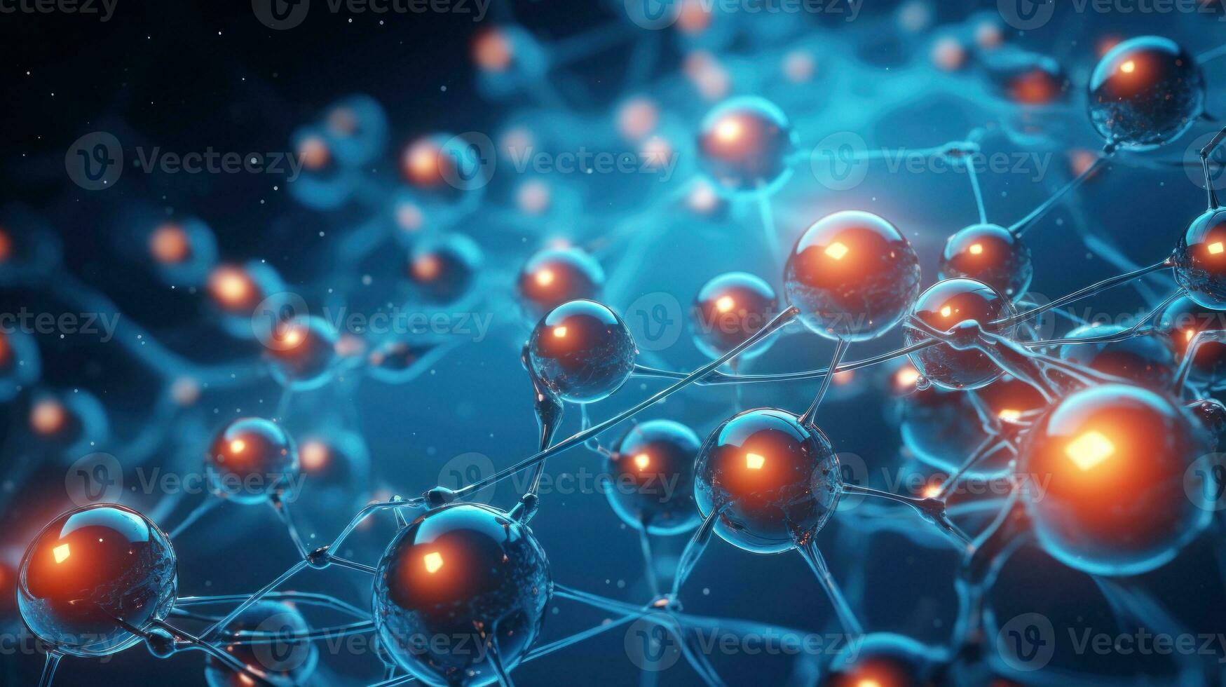 AI generated Atoms and molecules. Colorful Spheres in Motion. Abstract background. Futuristic Geometry. Concept of science chemistr Pro Photo