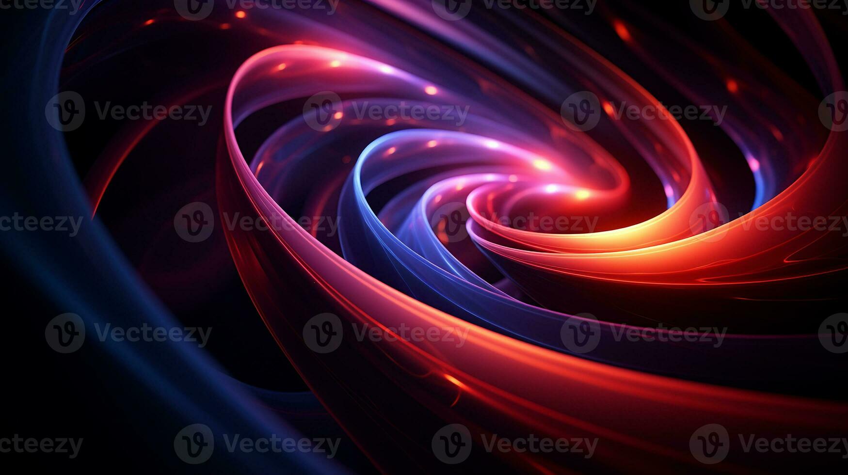 AI generated Abstract wavy circle neon lights on black background. Dynamic glowing neon lines over the dark color. Fast moving light effect, data transfer concept light. Generative AI Pro Photo