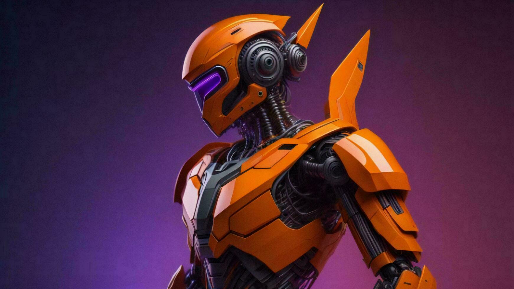 AI generated Android with orange helmet isolated on purple background. generative ai photo