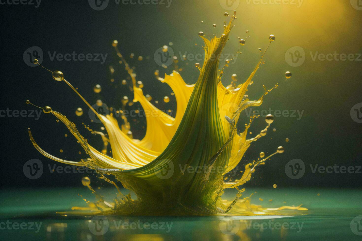 AI generated yellow paint splashing isolated on black background. ai generated Pro Photo
