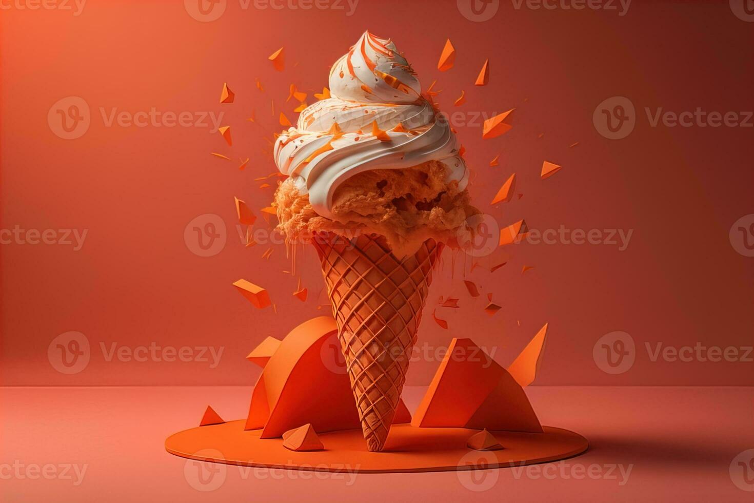 AI generated Ice cream in waffle cone on blue background, top view, flat lay. ai generative Pro Photo