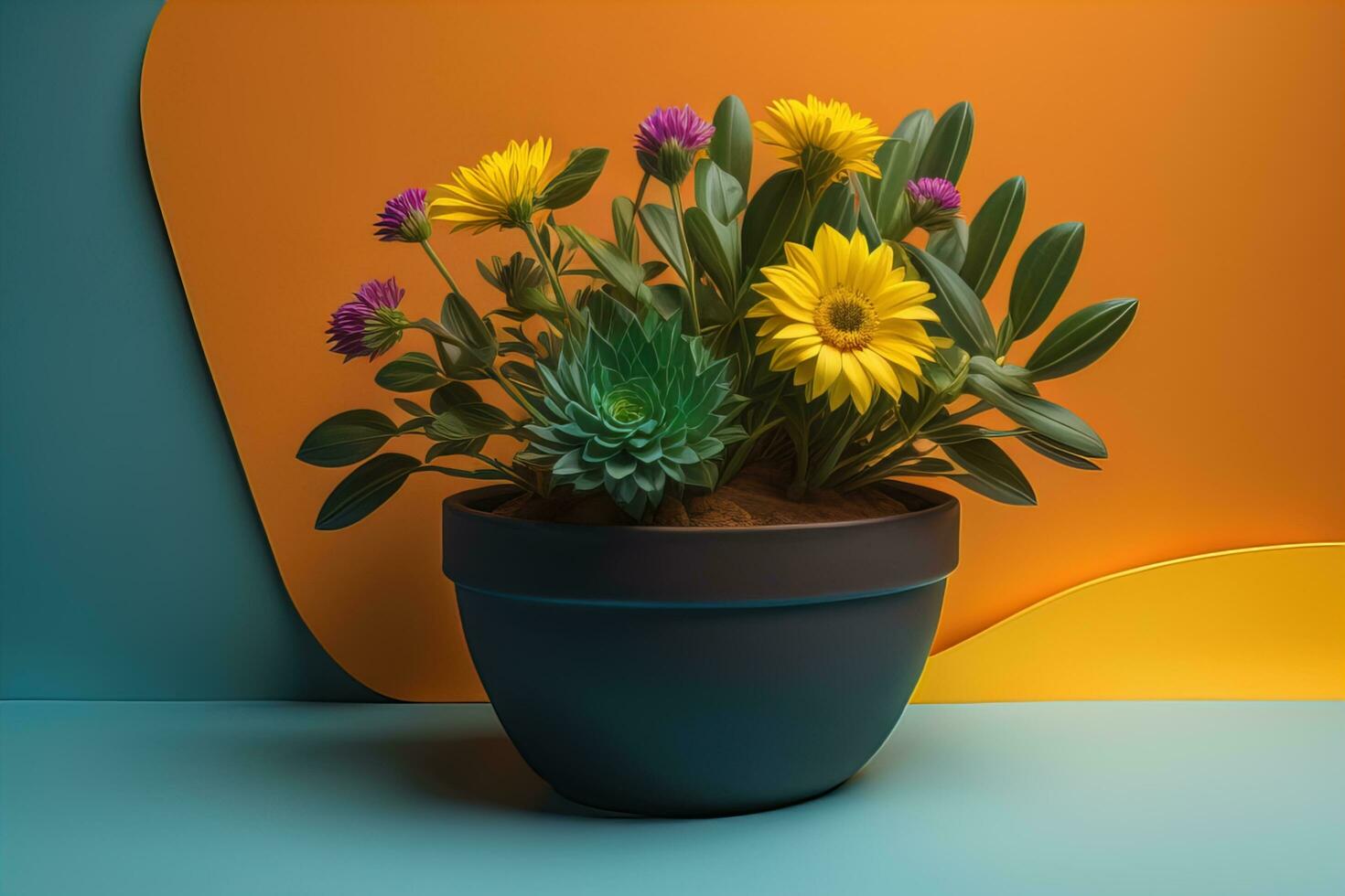 AI generated Flowers in a pot on a solid color background. ai generative photo