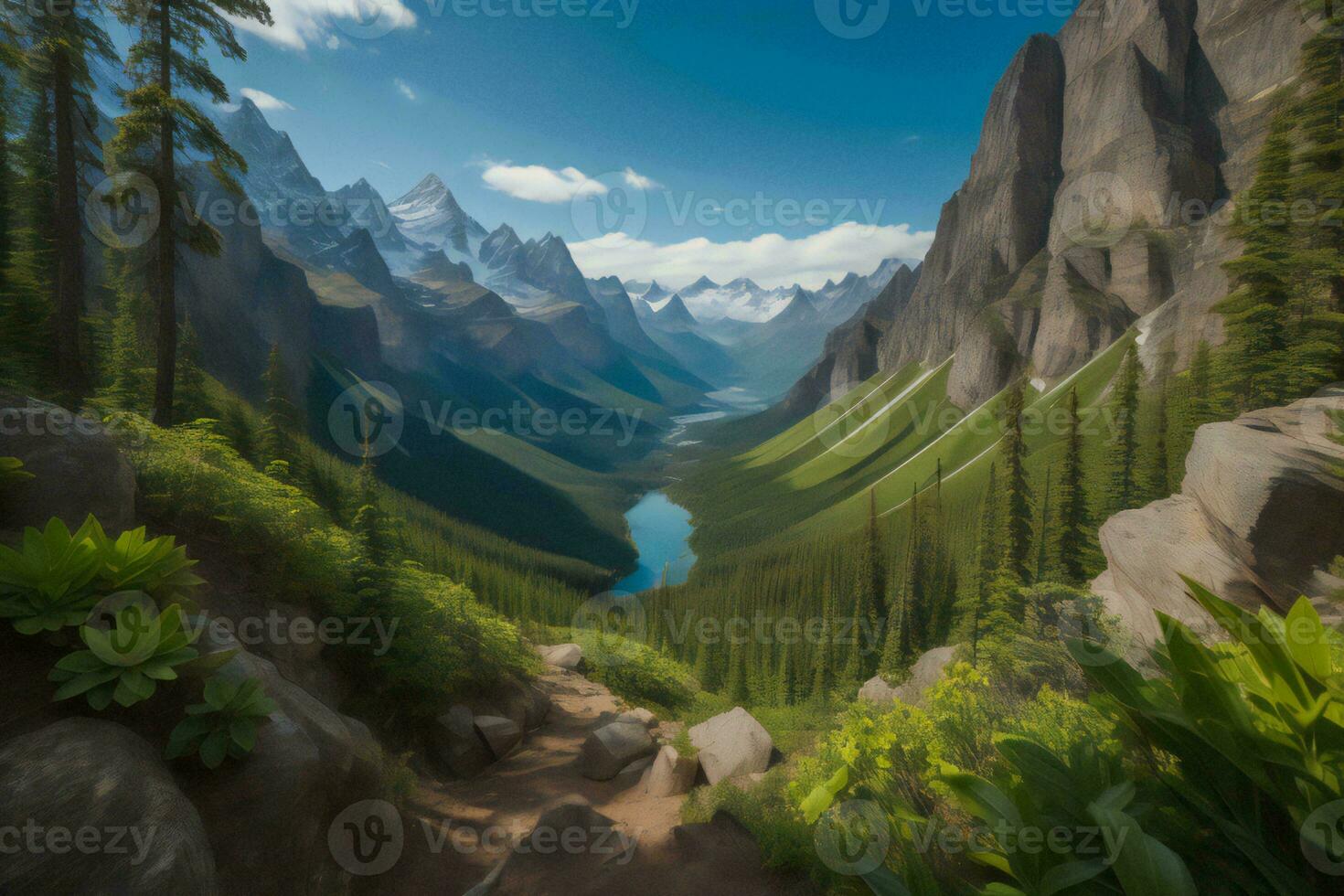 AI generated Panoramic view of the lake and mountains. generative ai Pro Photo