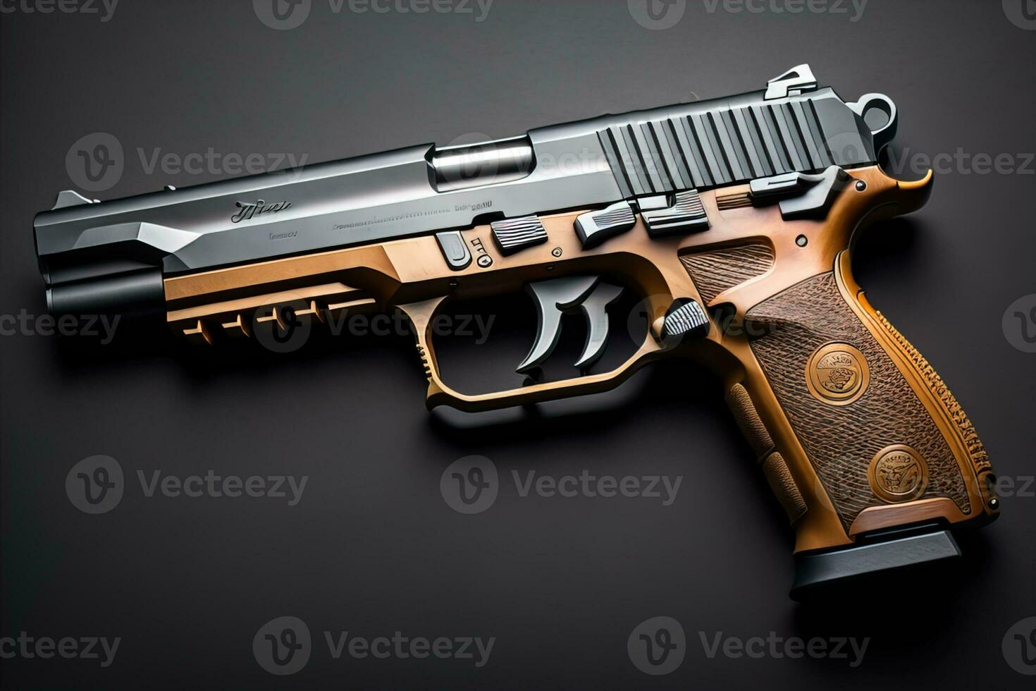 AI generated Semi-automatic handgun on a solid color background. Close-up. ai generative Pro Photo