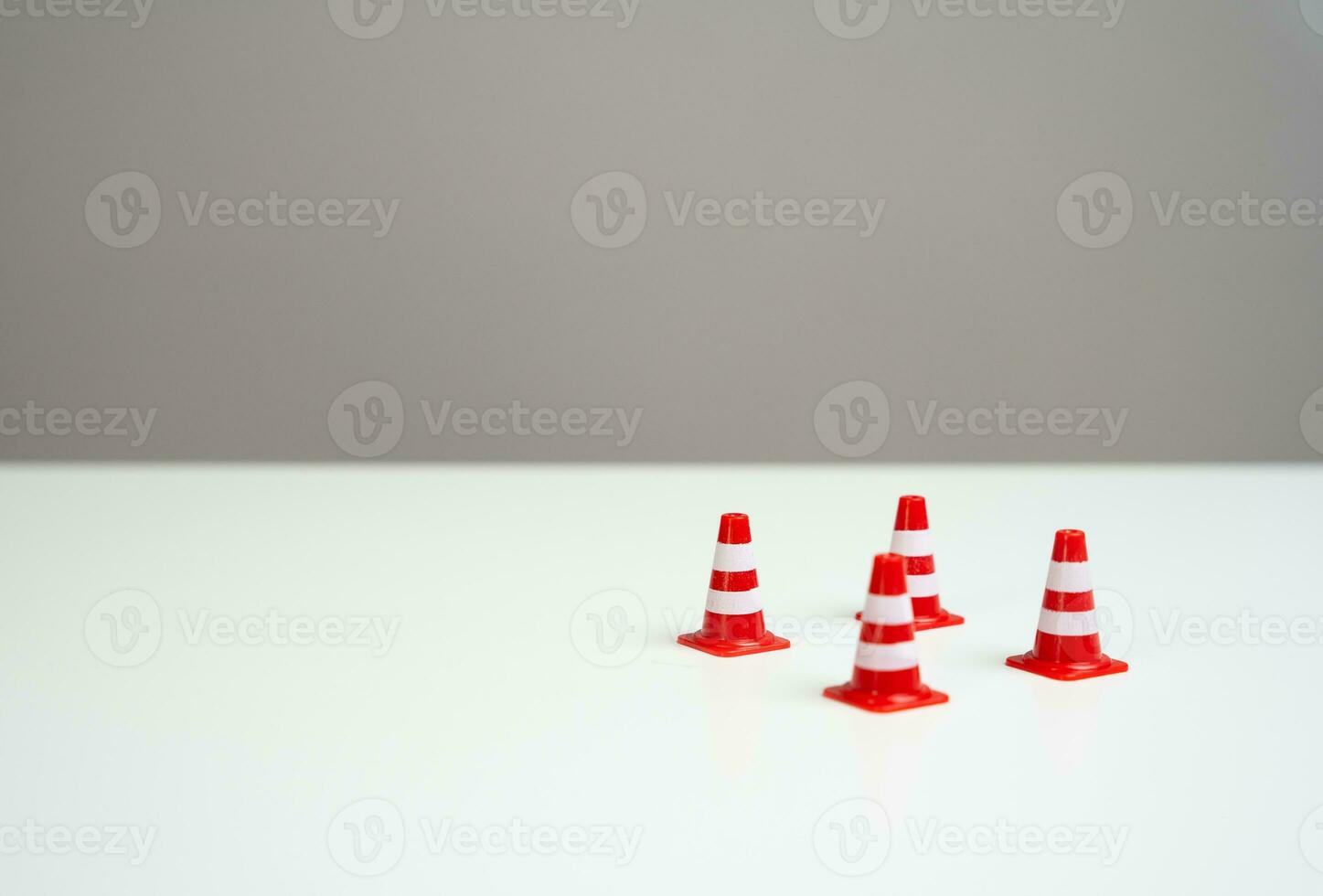 Road cones on a white background. An insurmountable obstacle. Backlog of tasks. On the approach to a difficult challenge. Putting a halt to certain decisions. Deal with problems Pro Photo