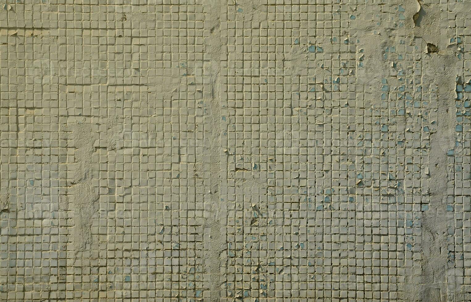 The texture of the old concrete wall, with a coating of shallow tiles of square shape, painted in gray. Background image of a wall of many square white tiles Pro Photo