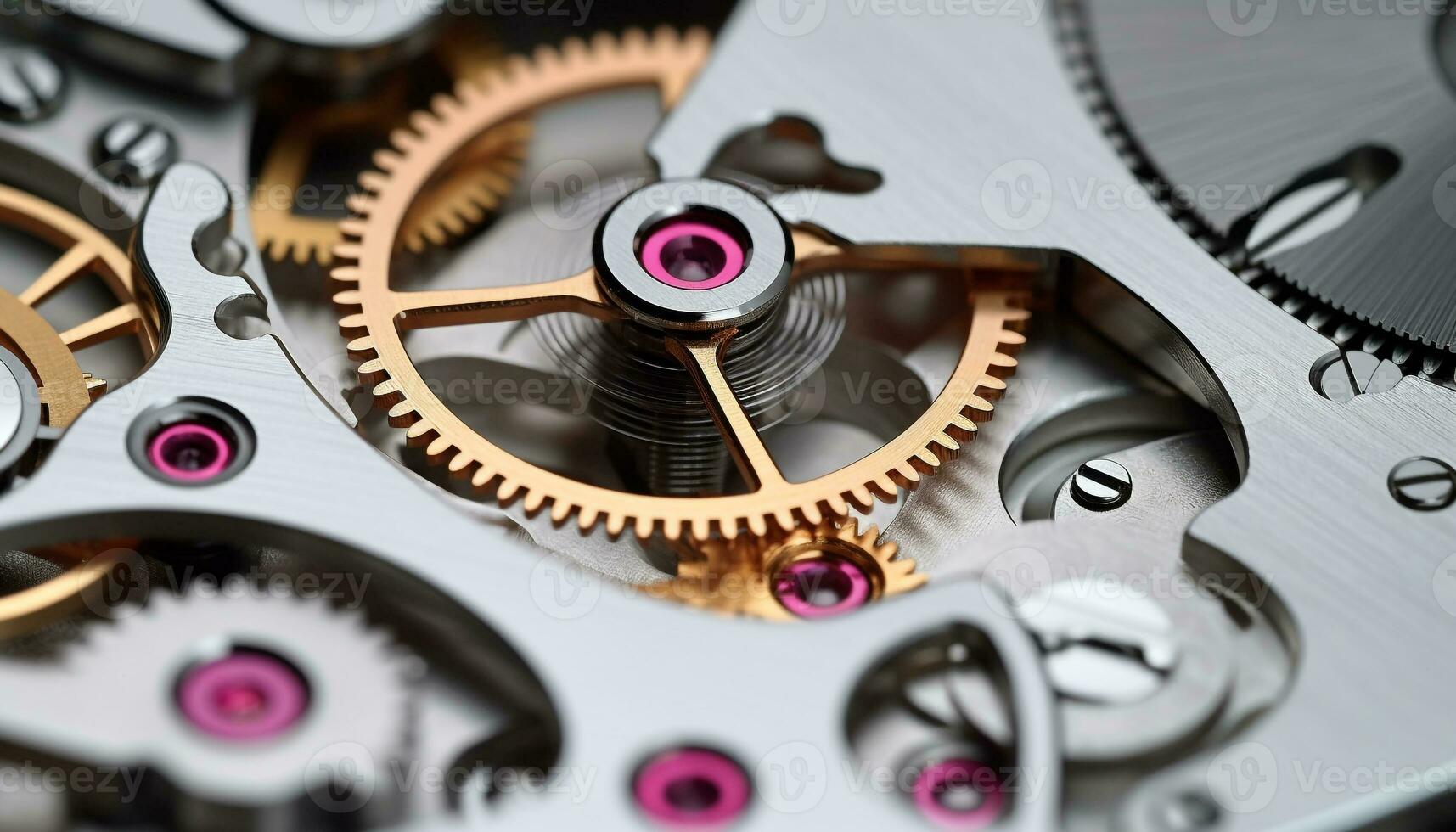 AI generated Clockworks turning in close up, teamwork balancing precision generated by AI Pro Photo