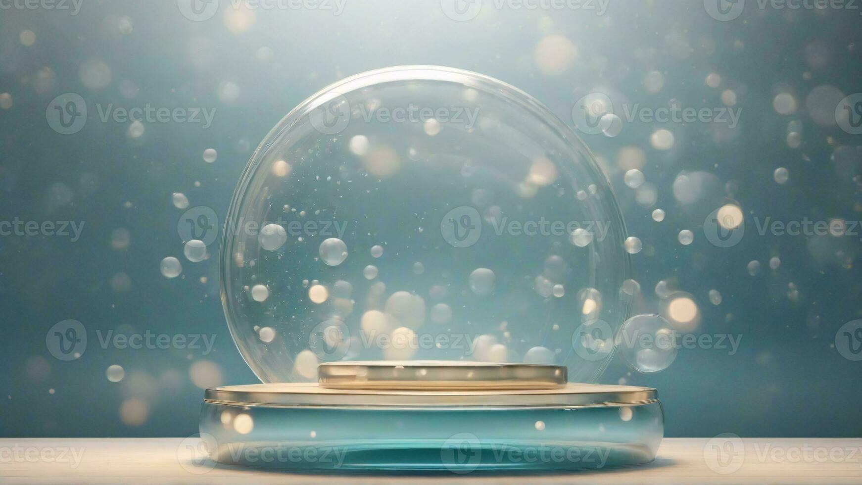 AI generated Empty glass snow globe with bubble bokeh effect background. 3d render Pro Photo