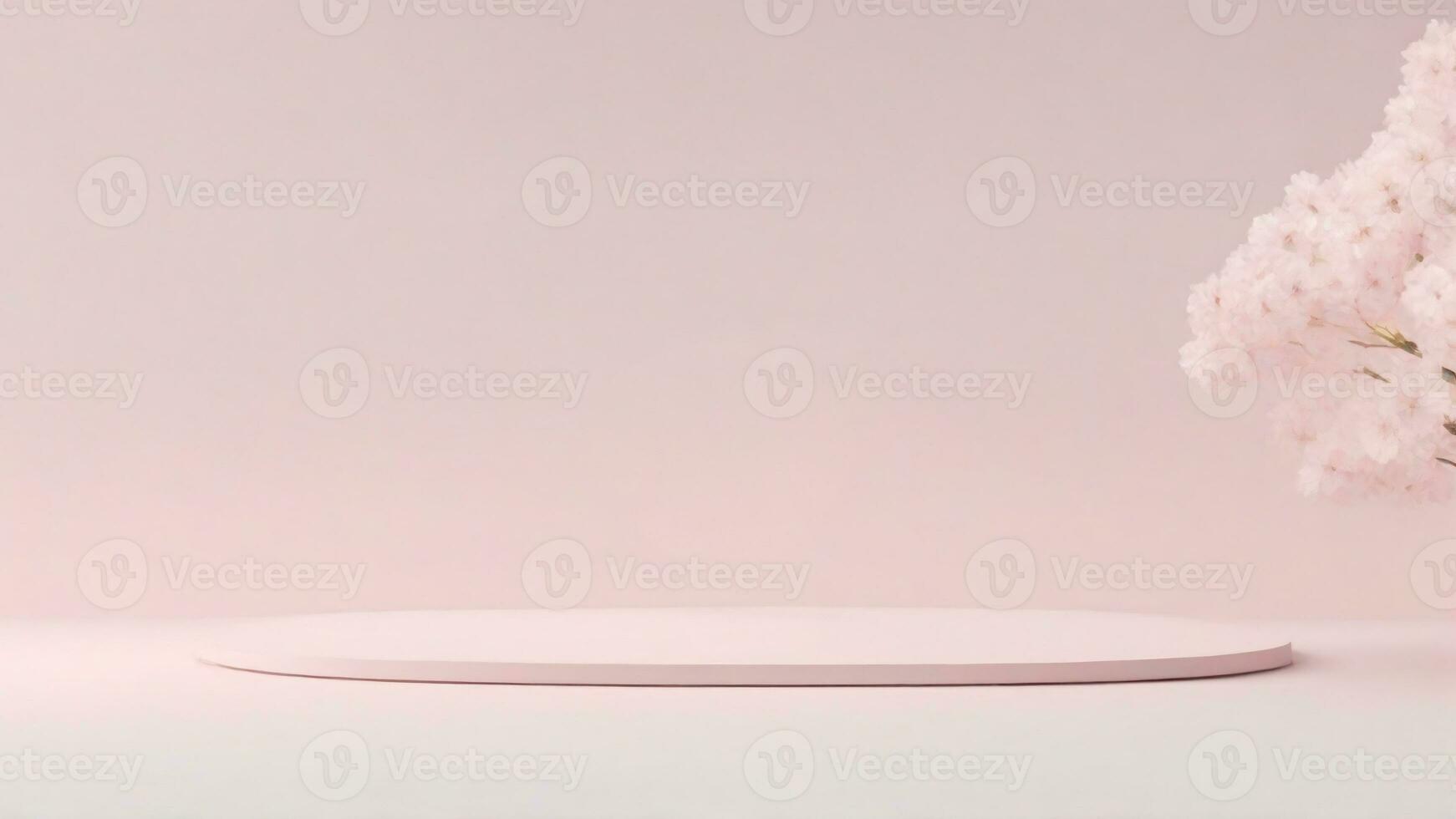 AI generated 3d render of minimal product display podium with cherry blossom background. Pro Photo