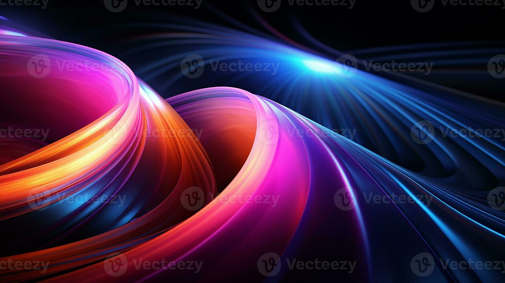 AI generated Abstract wavy circle neon lights on black background. Dynamic glowing neon lines over the dark color. Fast moving light effect, data transfer concept light. Generative AI Pro Photo