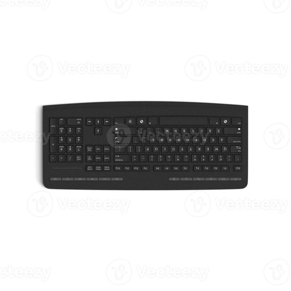 Wireless keyboard isolated on white background high quality image front top view black full rotated Pro Photo