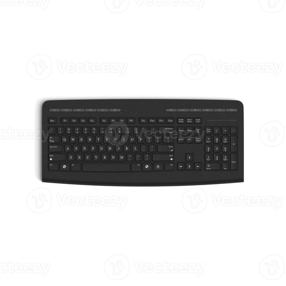 Wireless keyboard isolated on white background high quality image front top view black full rotated multifunctional front Pro Photo
