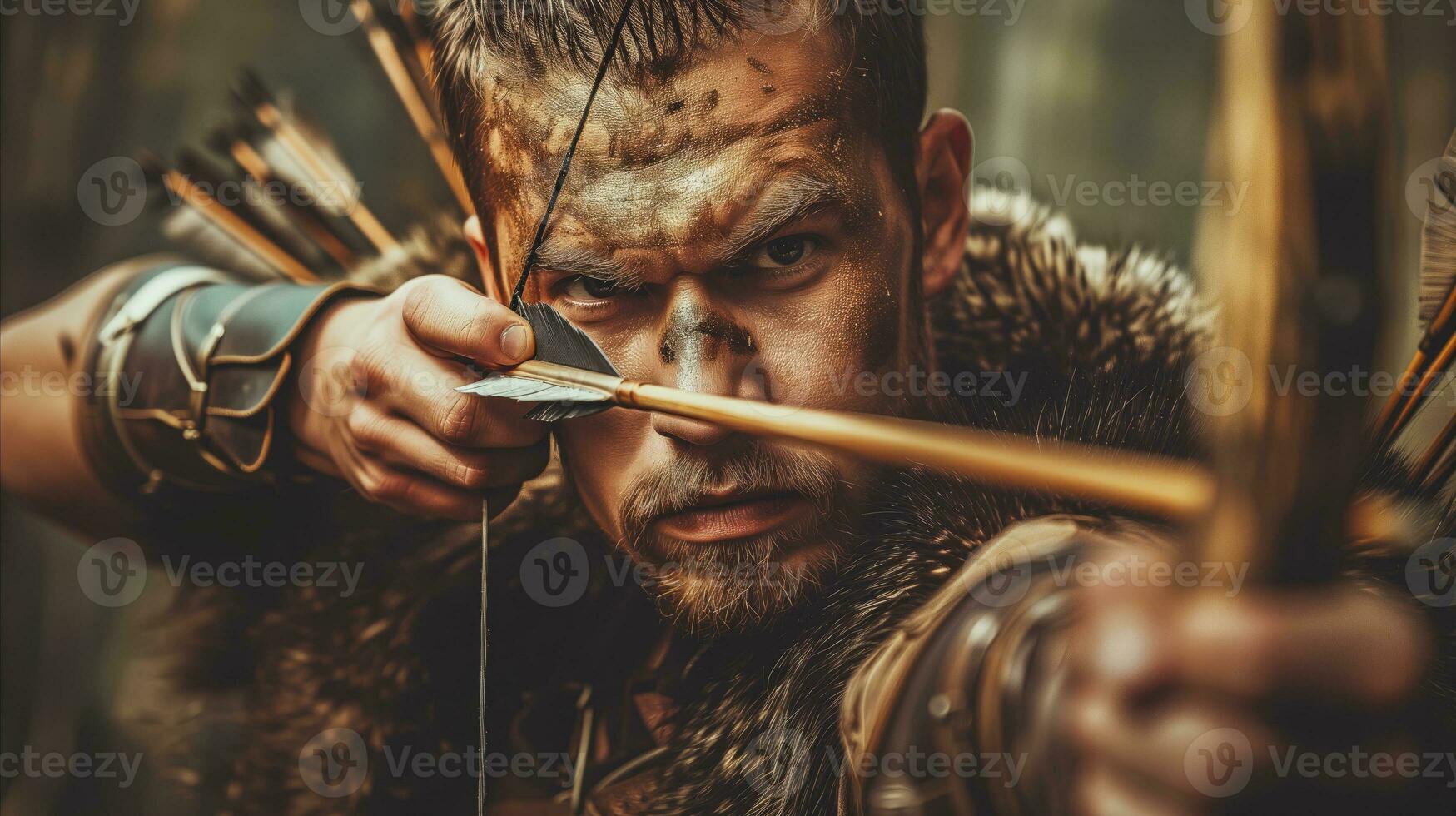 AI generated A man pointing his bow at a target. Generative AI Pro Photo