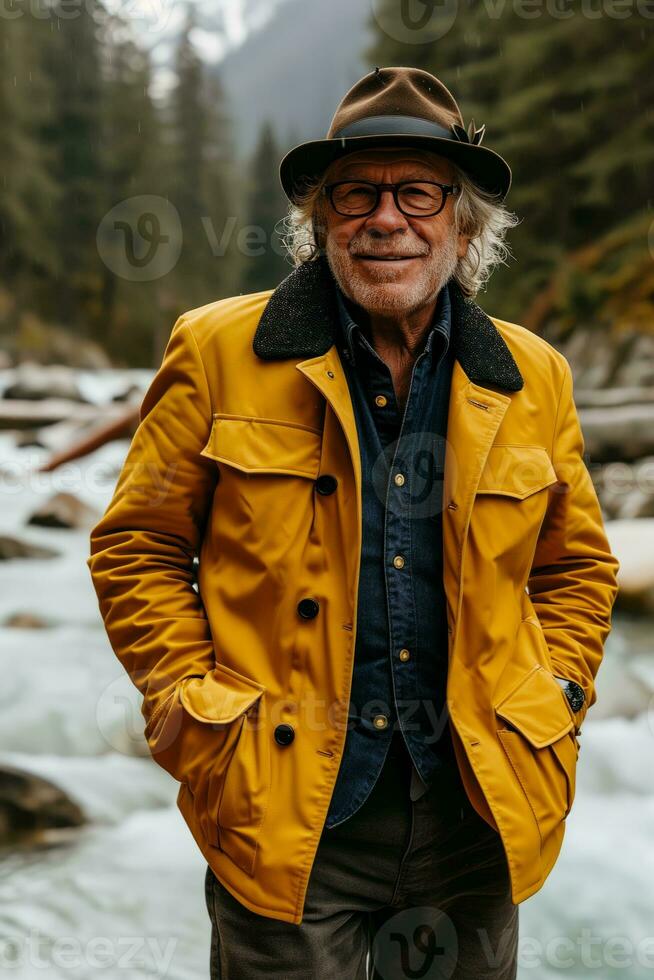 AI generated A man standing by a stream in the forest. Generative AI Pro Photo