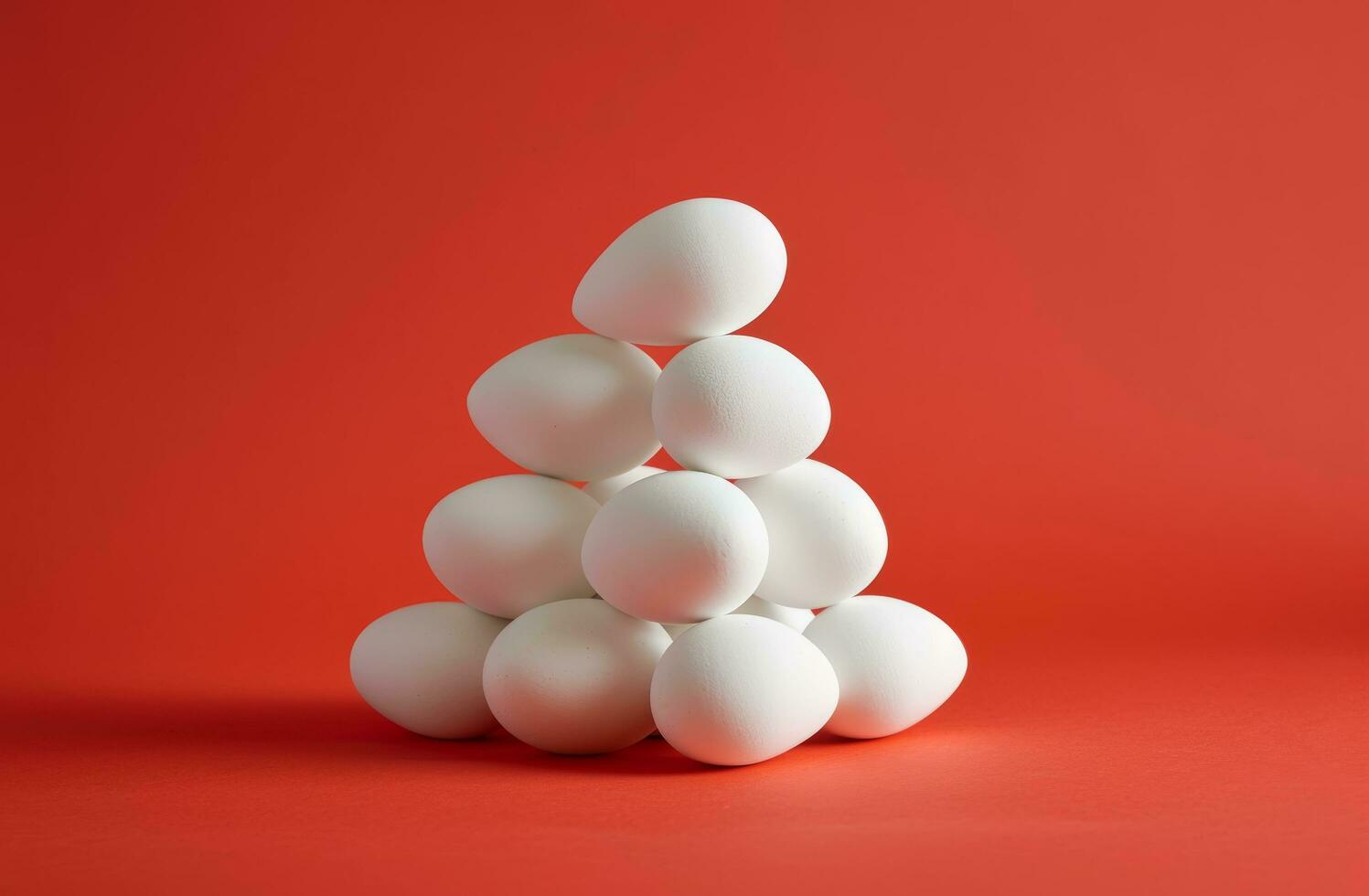 AI generated a stack of white easter eggs on a red background mockup Free Photo