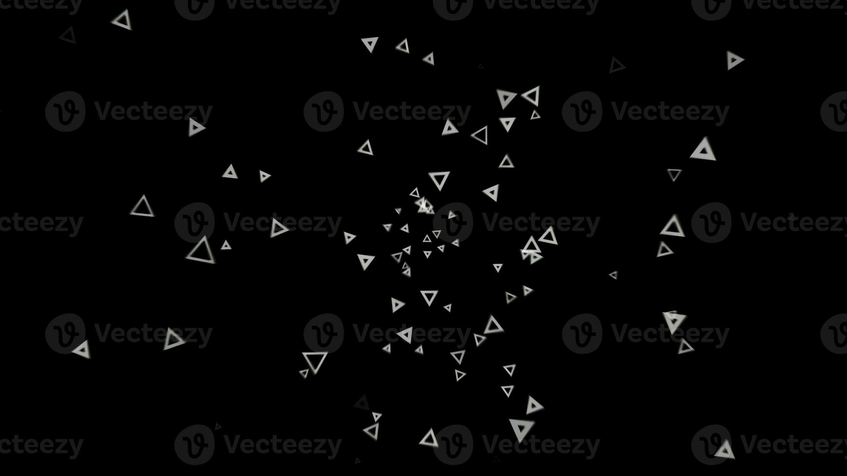 Computer generated abstract space. Animation. Abstract background of numerous white triangles floating chaotically on a black. Pro Photo