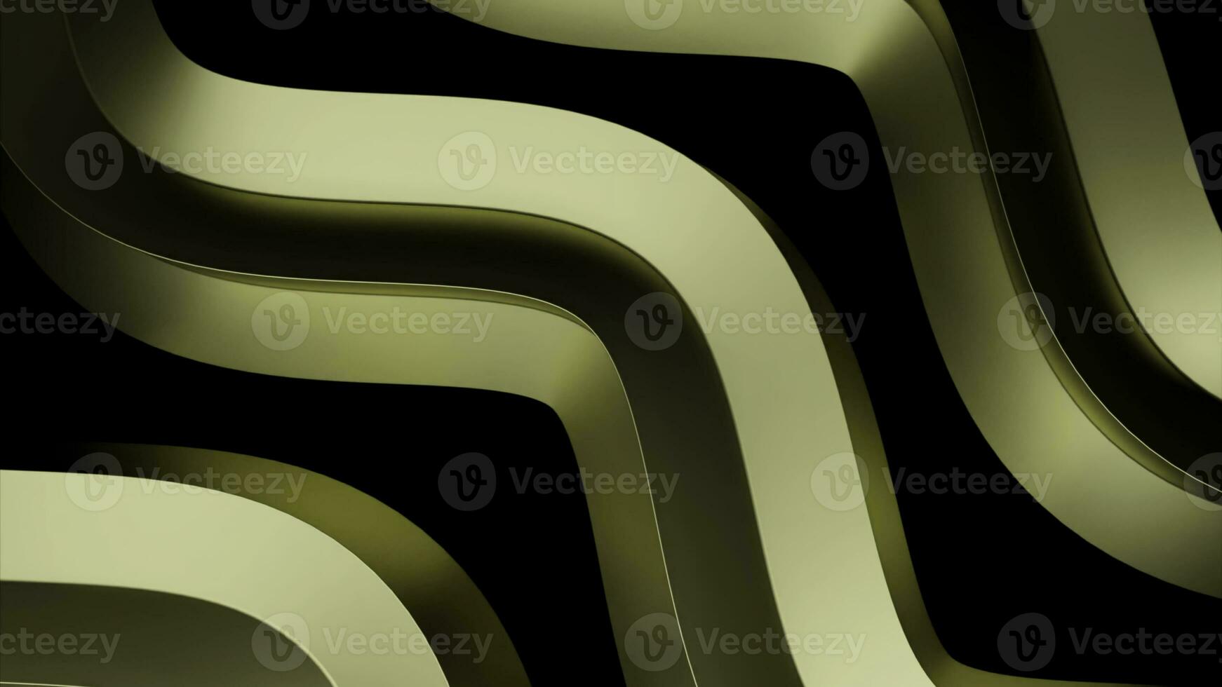 Metallic 3D rotating and bending lines, game of light and shadow. Design. Colorful spinning waves isolated on a black background. Pro Photo