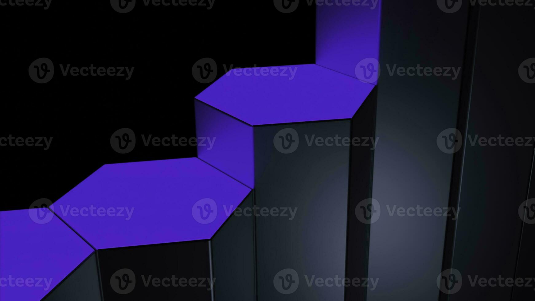Rising hexagons on black background. Design. Columns rising alternately in virtual space. Virtual steps of rising hexagons on black background Pro Photo