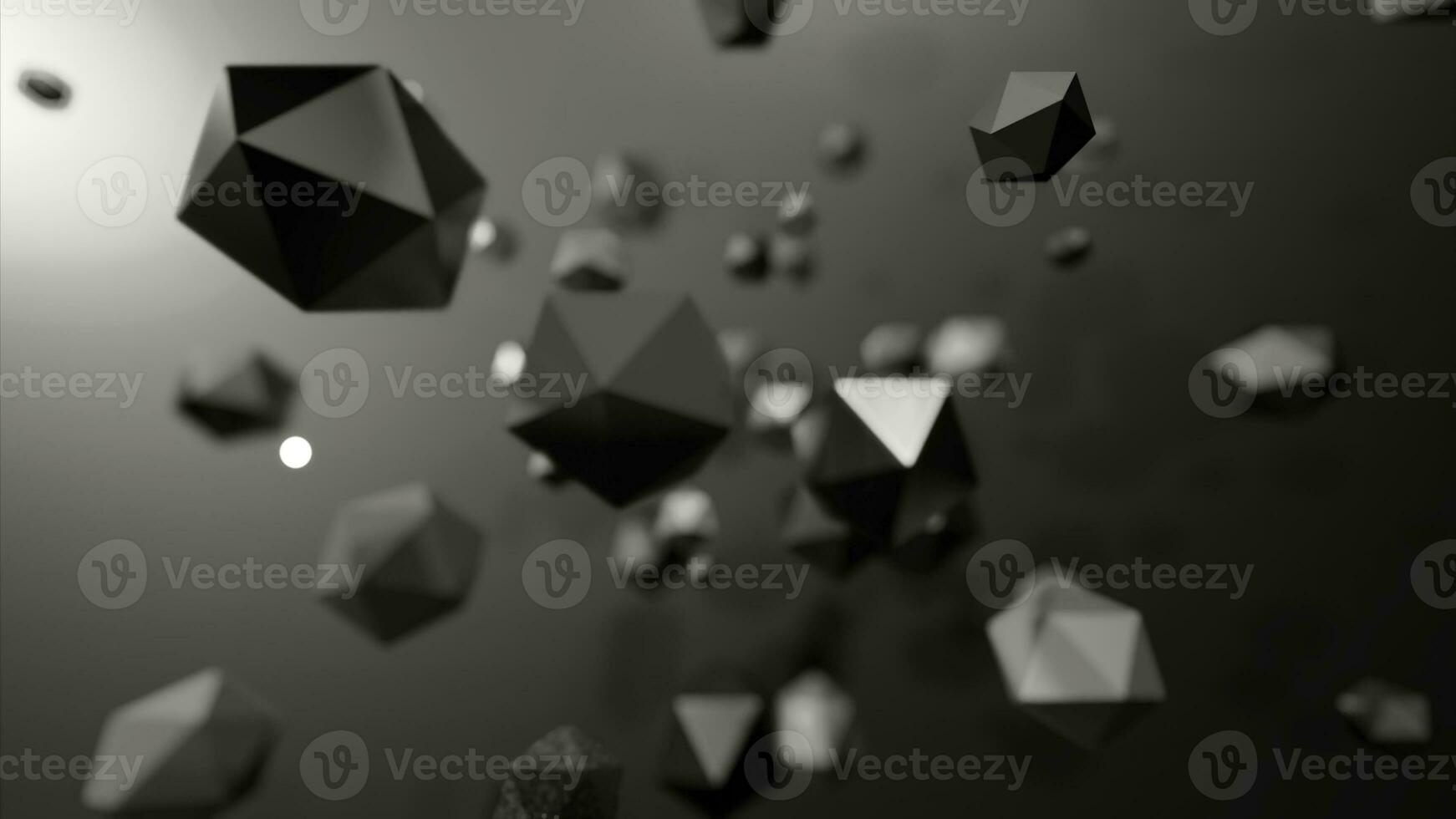 Geometric molecules move in rotating flow. Design. 3D polygons rotate in space. Chaotic rotation of polygonal balls in stream Pro Photo