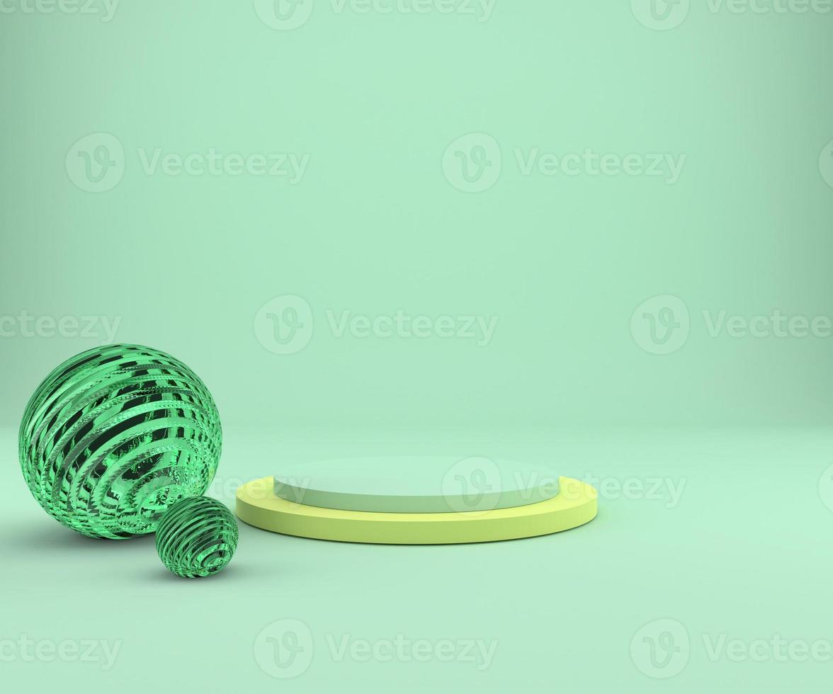 3d rendering studio with geometric shapes, podium on the floor. Platforms for product presentation, mock up background. Pro Photo