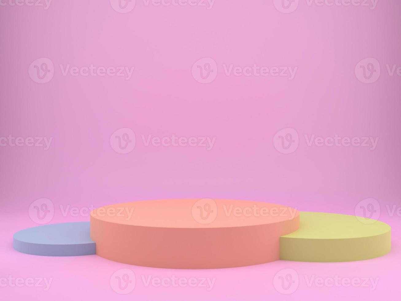 3d rendering studio with geometric shapes, podium on the floor. Platforms for product presentation, mock up background. Pro Photo