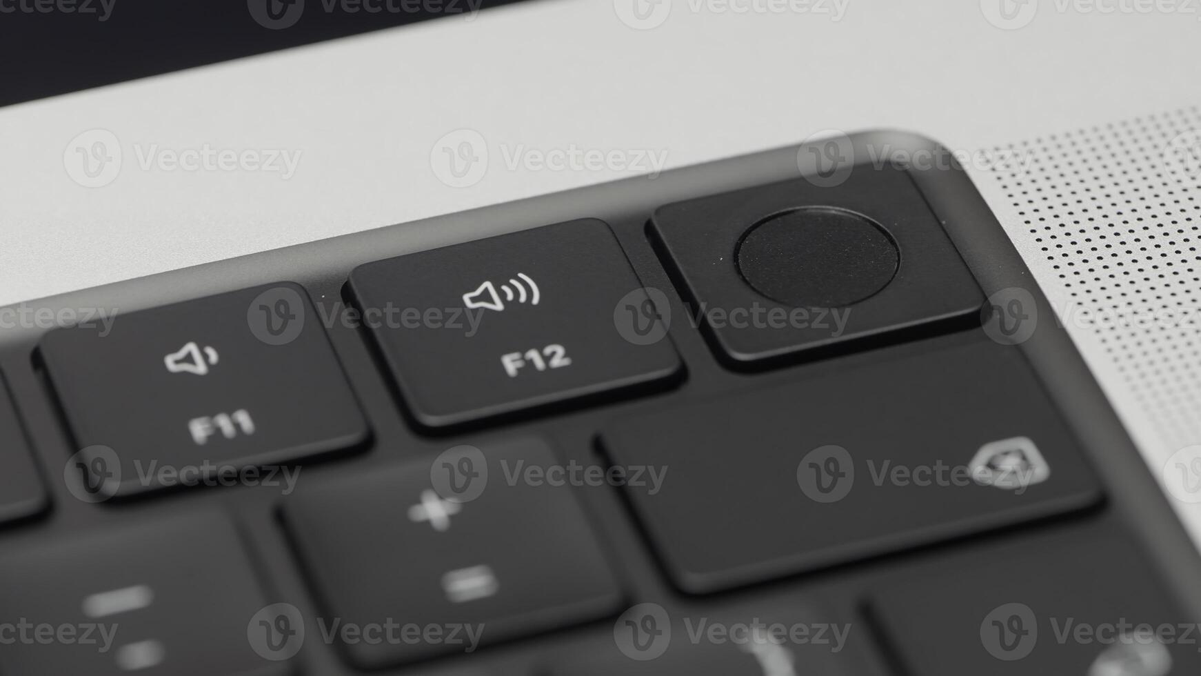 Laptop keyboard. Action. A person sits at a computer and works in modern conditions, close shooting of the keyboard and the printing process. Pro Photo
