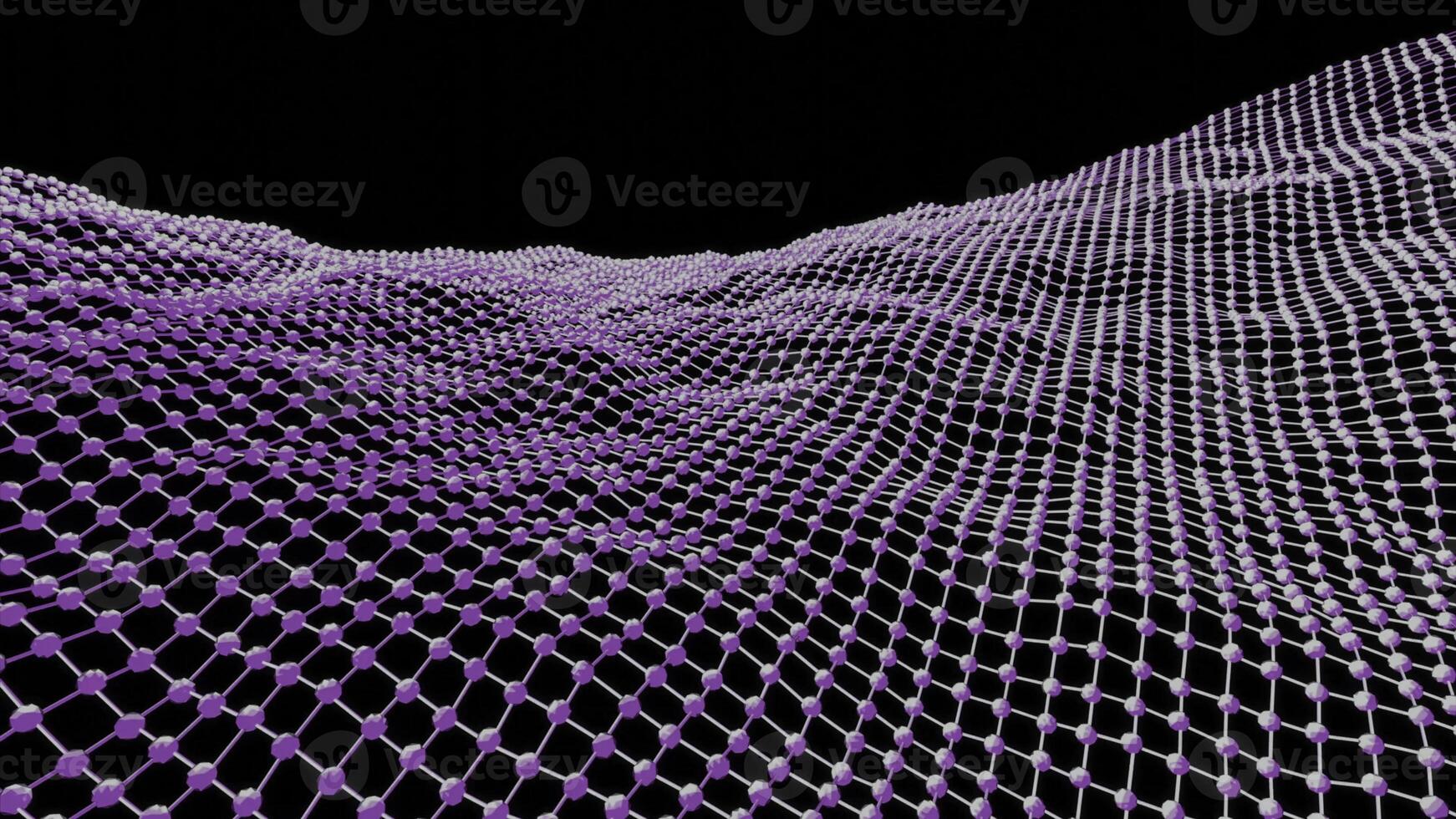 Mesh wavy surface moves on black background. Design. Virtual surface grid in cyberspace. Mesh surface with waves rotates in virtual space Pro Photo