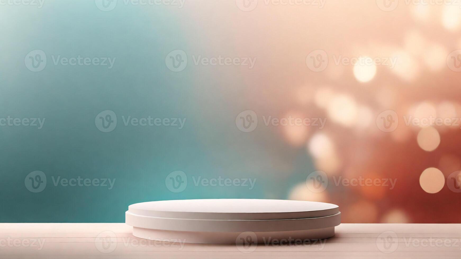 AI generated White podium for product display on bokeh green red background. 3d render Pro Photo