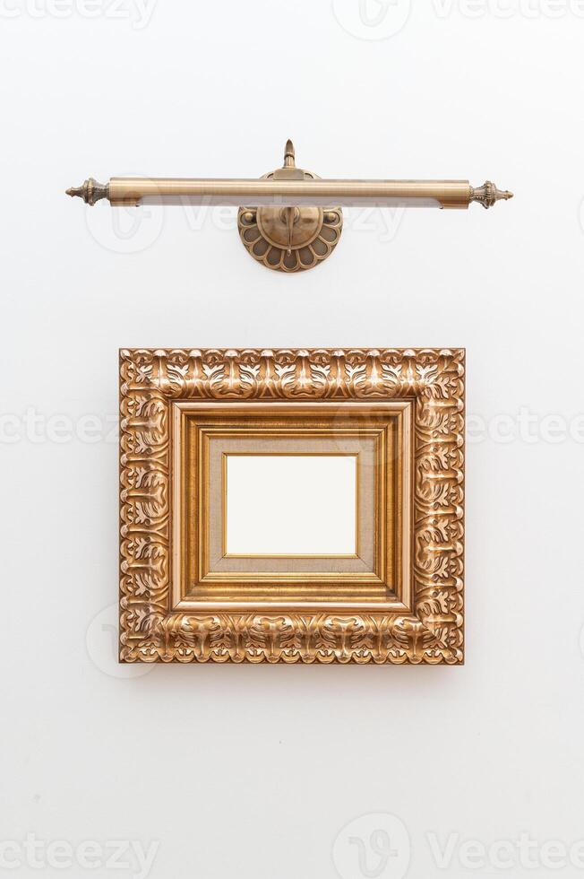 art display with touch of luxury using ornate gold frames. The gilded antique design adds elegance and retro charm to setting. The empty frames provide a blank canvas to showcase pictures or artwork. Pro Photo