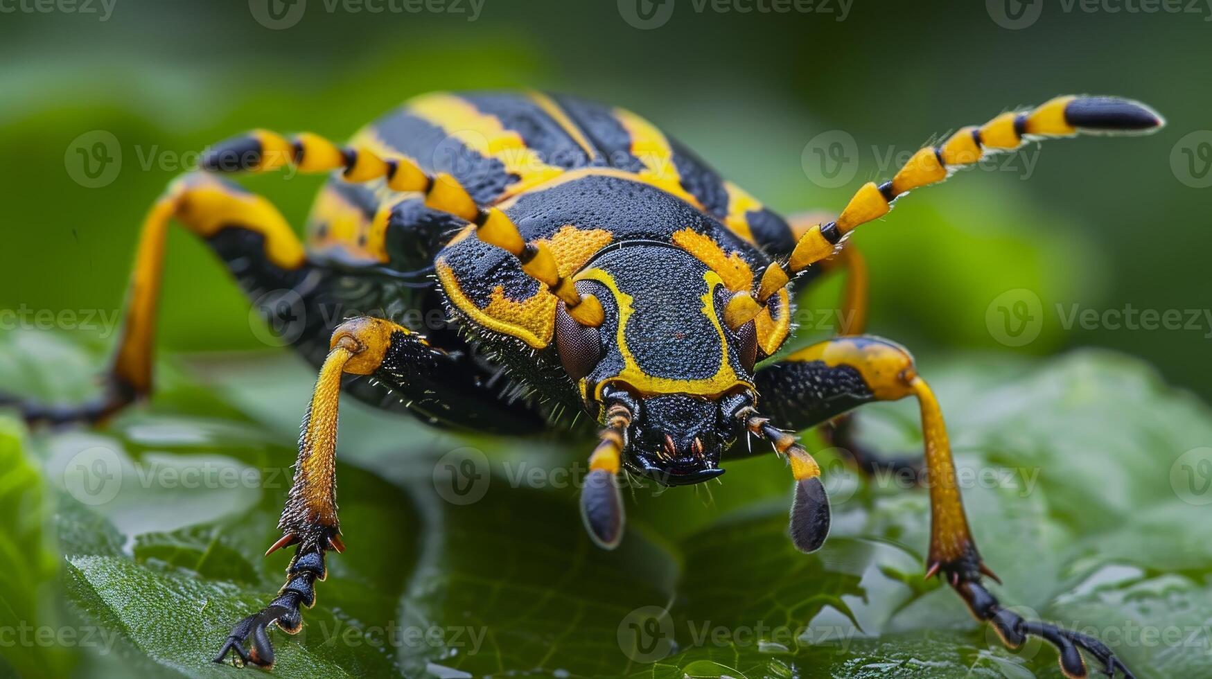 AI generated Close-up of a vibrant bug showcasing intricate patterns and bright colors, mesmerizing, Ai Generated. Pro Photo