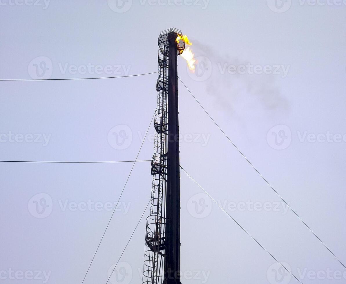 Torch system on an oil field. System of a torch on an oil field. Burning through a torch head. Pro Photo
