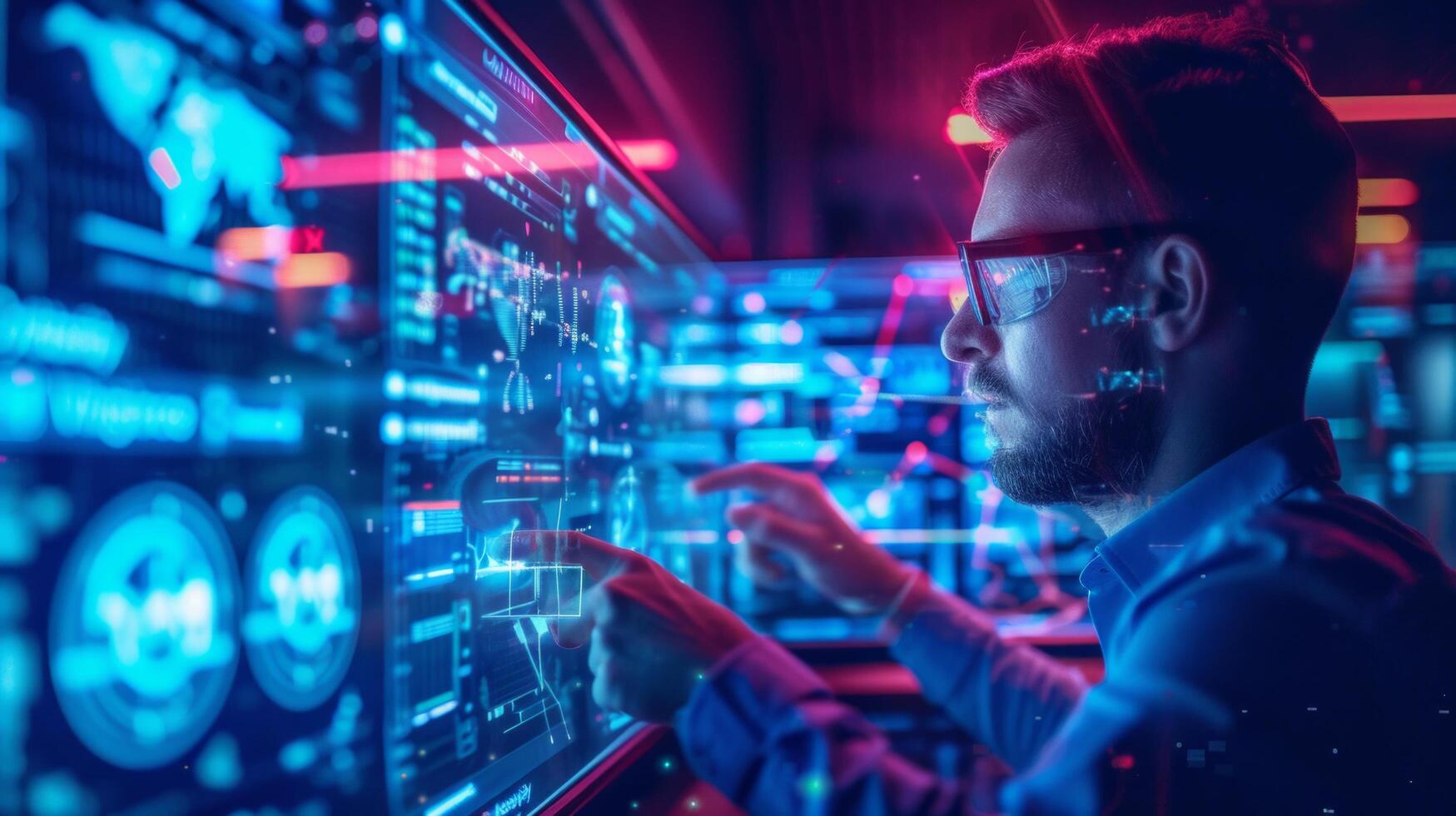 AI generated Business professionals actively monitor electronic data security using AI-driven cybersecurity tools photo