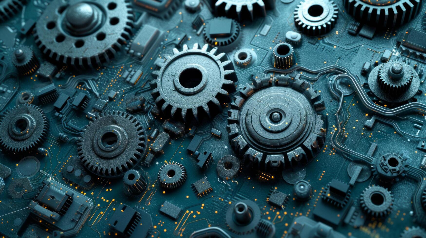 AI generated A fusion of mechanical gears and digital circuitry, symbolizing the convergence of technology and engineering. photo