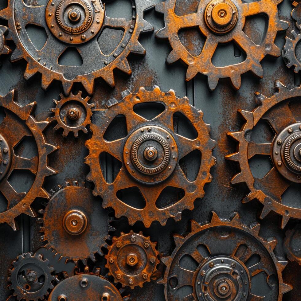 AI generated Interlocking gears and cogs forming an intricate, steampunk-inspired design photo