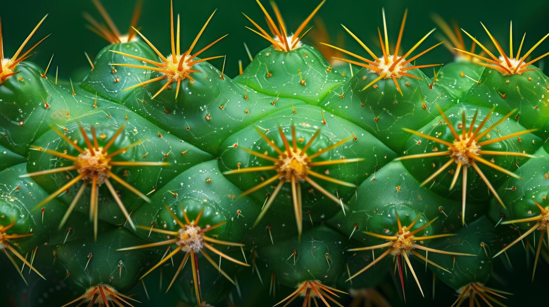 AI generated A macro photograph of a cactus's spiny surface, highlighting its unique texture and adaptations for water retention Free Photo
