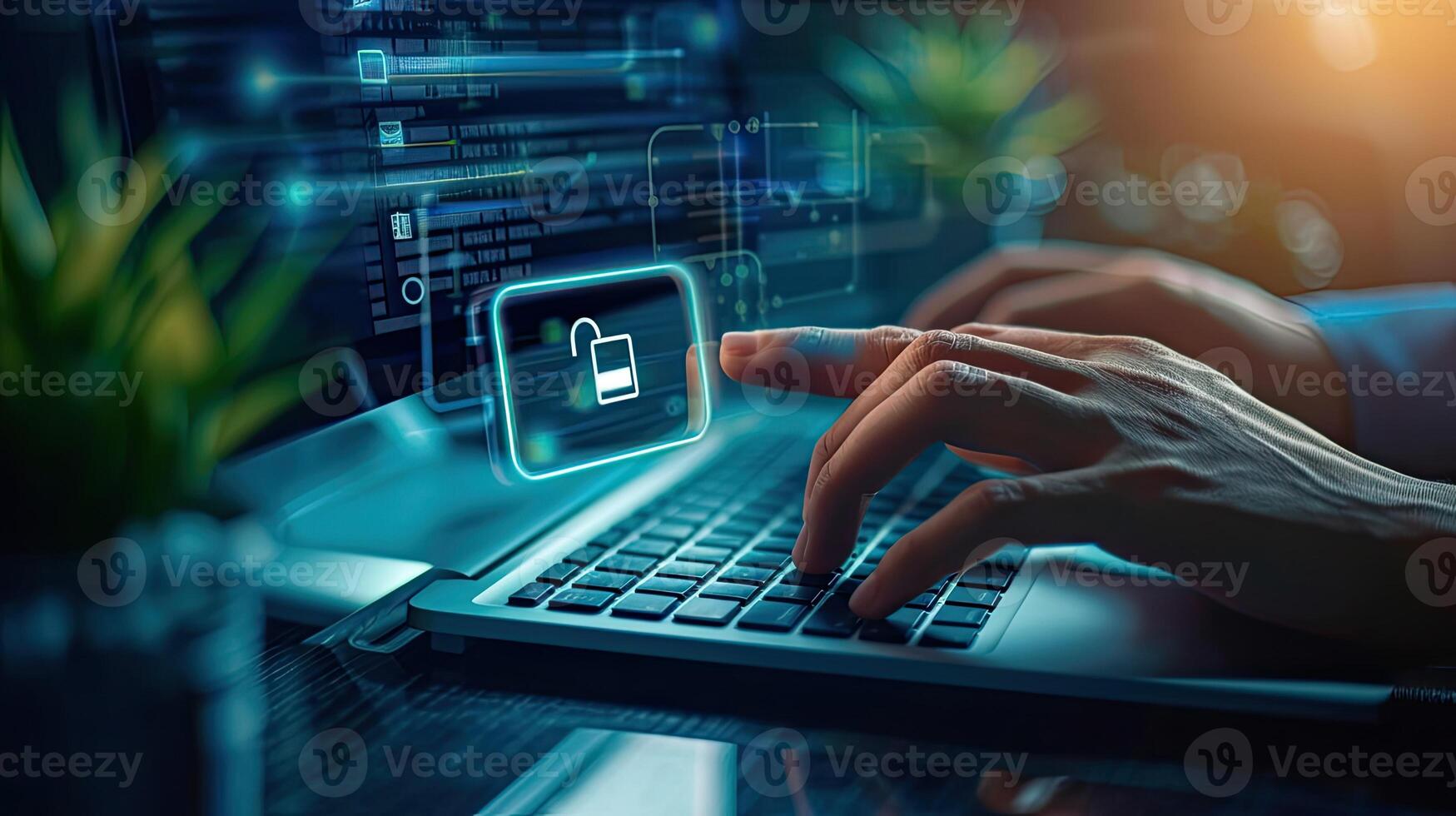 AI generated Male hand using computer keyboard to search information, using search bar function on your website, search engine optimization Pro Photo