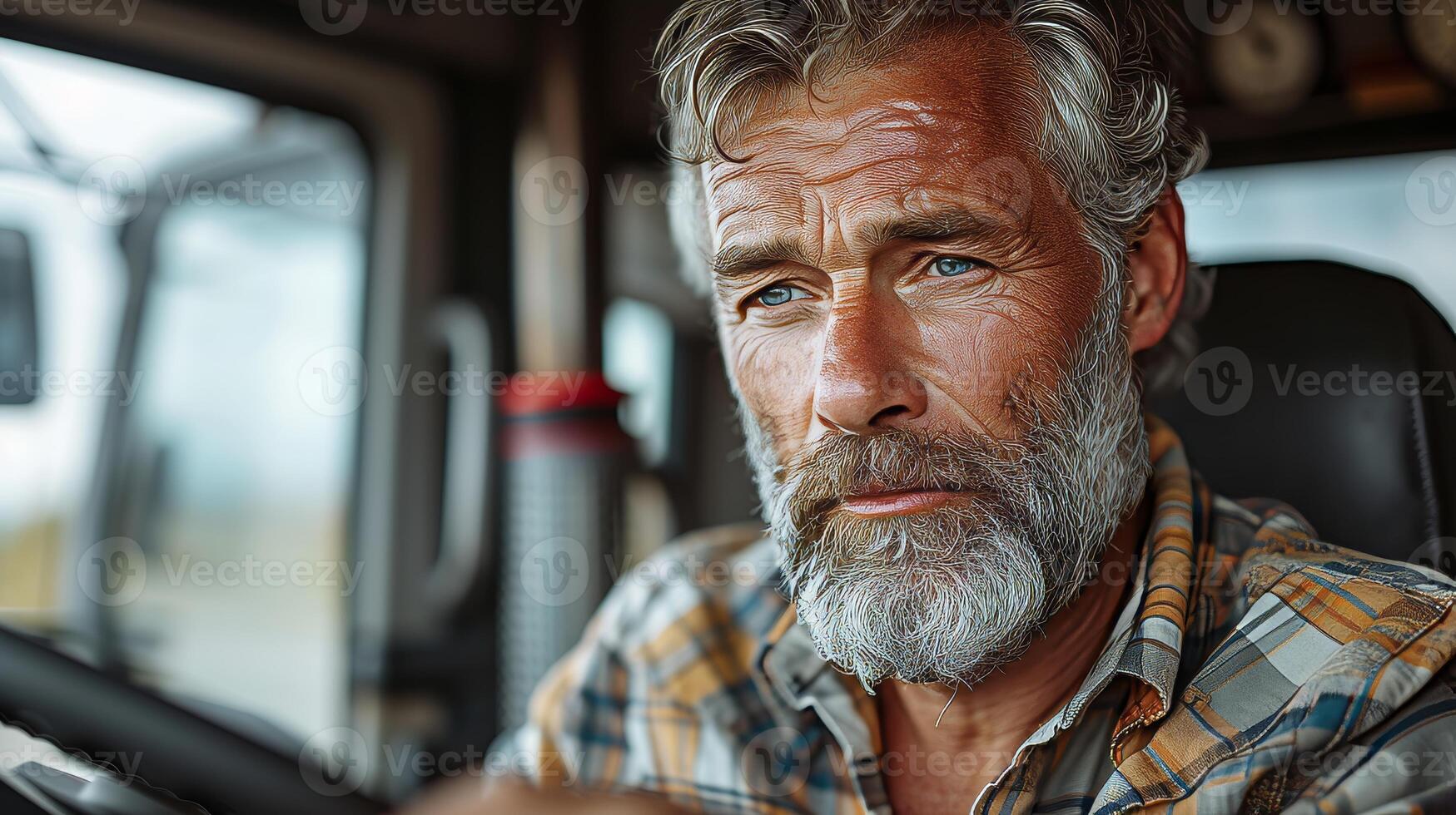 AI Generated On a sunny day, a farmer uses a tablet computer in a tractor Pro Photo
