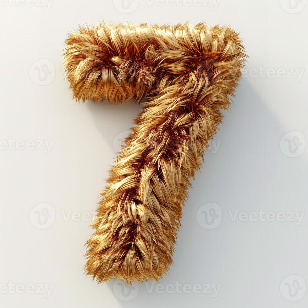 AI generated A unique image showcasing a number 7 covered in golden fur, casting a soft shadow on a pristine white background. Pro Photo
