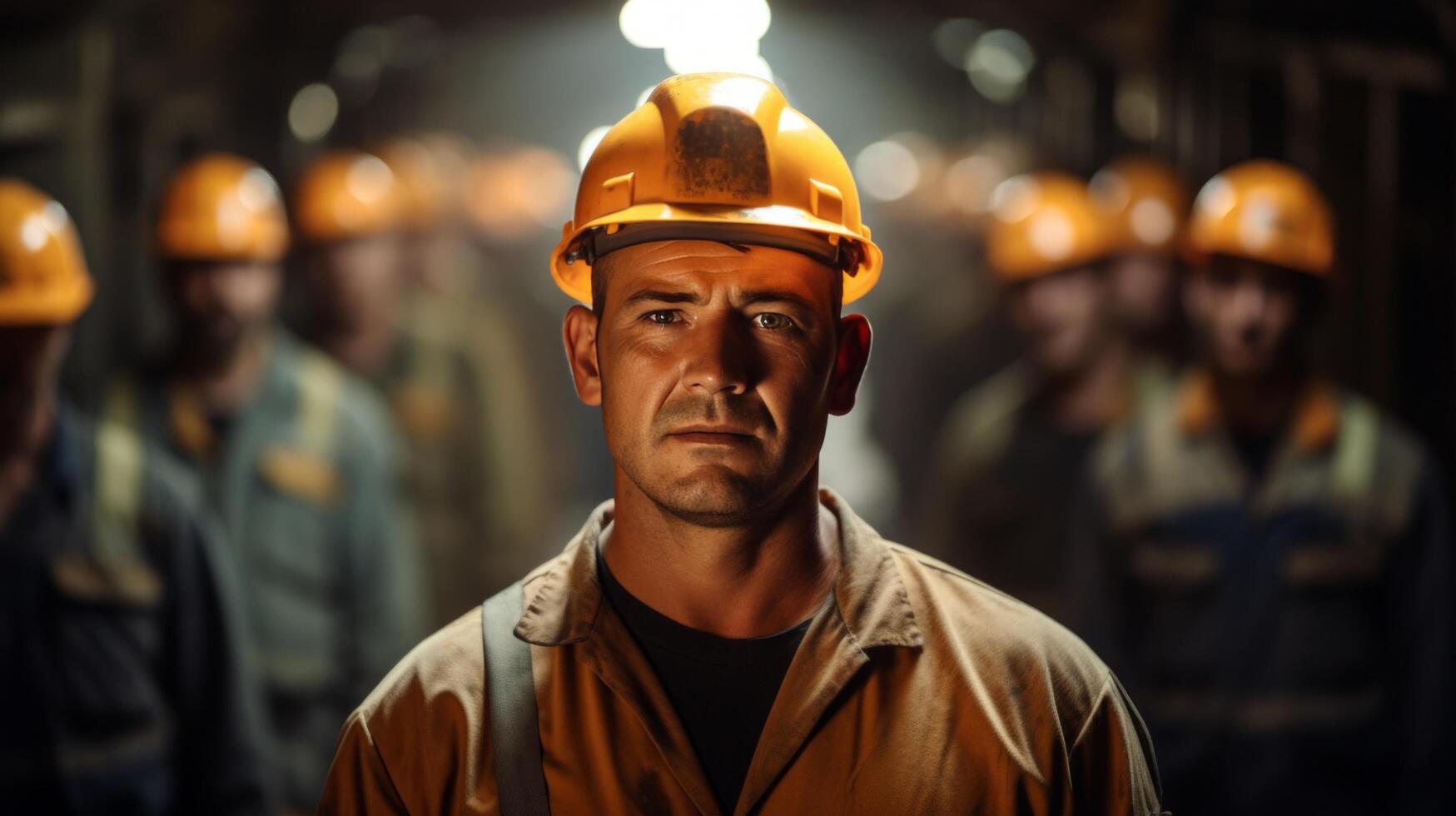 AI generated a man is standing in front of group of workers in a tunnel Free Photo