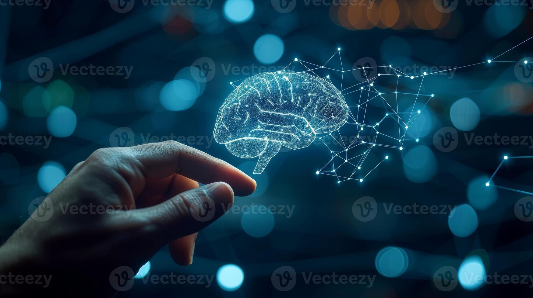 AI generated Businessman finger touching digital data on space background, Generative AI Pro Photo