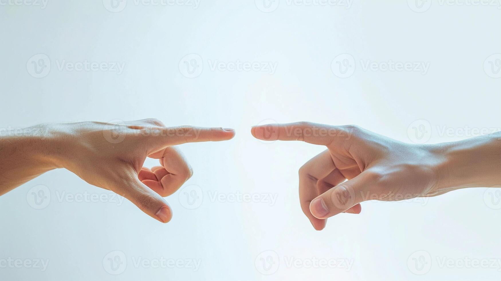 AI generated Showcase two hands, one pointing with an index finger and the other receiving the direction, background image, generative AI Pro Photo
