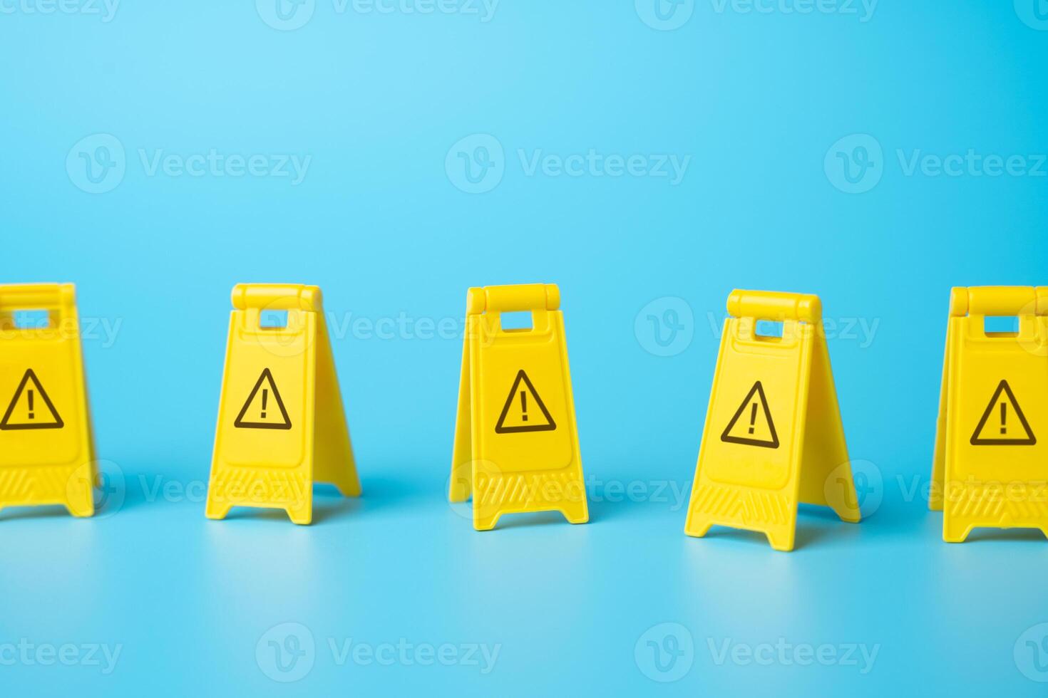Yellow warning signs. Be careful. Find an alternative path. An insurmountable obstacle. Approach to a difficult challenge. Putting a halt to certain decisions. Restrictions. Sanctions and freezing. Pro Photo