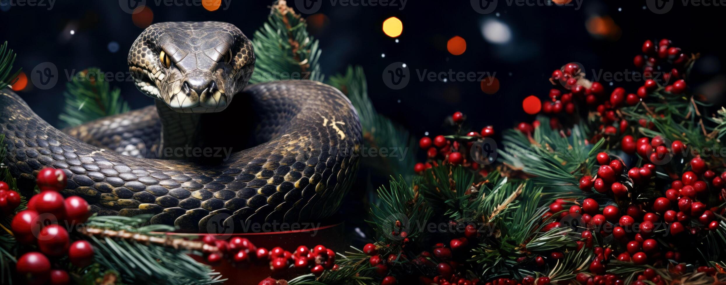 AI Generated Branches with rowan trees on New Year background with snake as a symbol of the year 2025. Banner with space for text and advertising Pro Photo