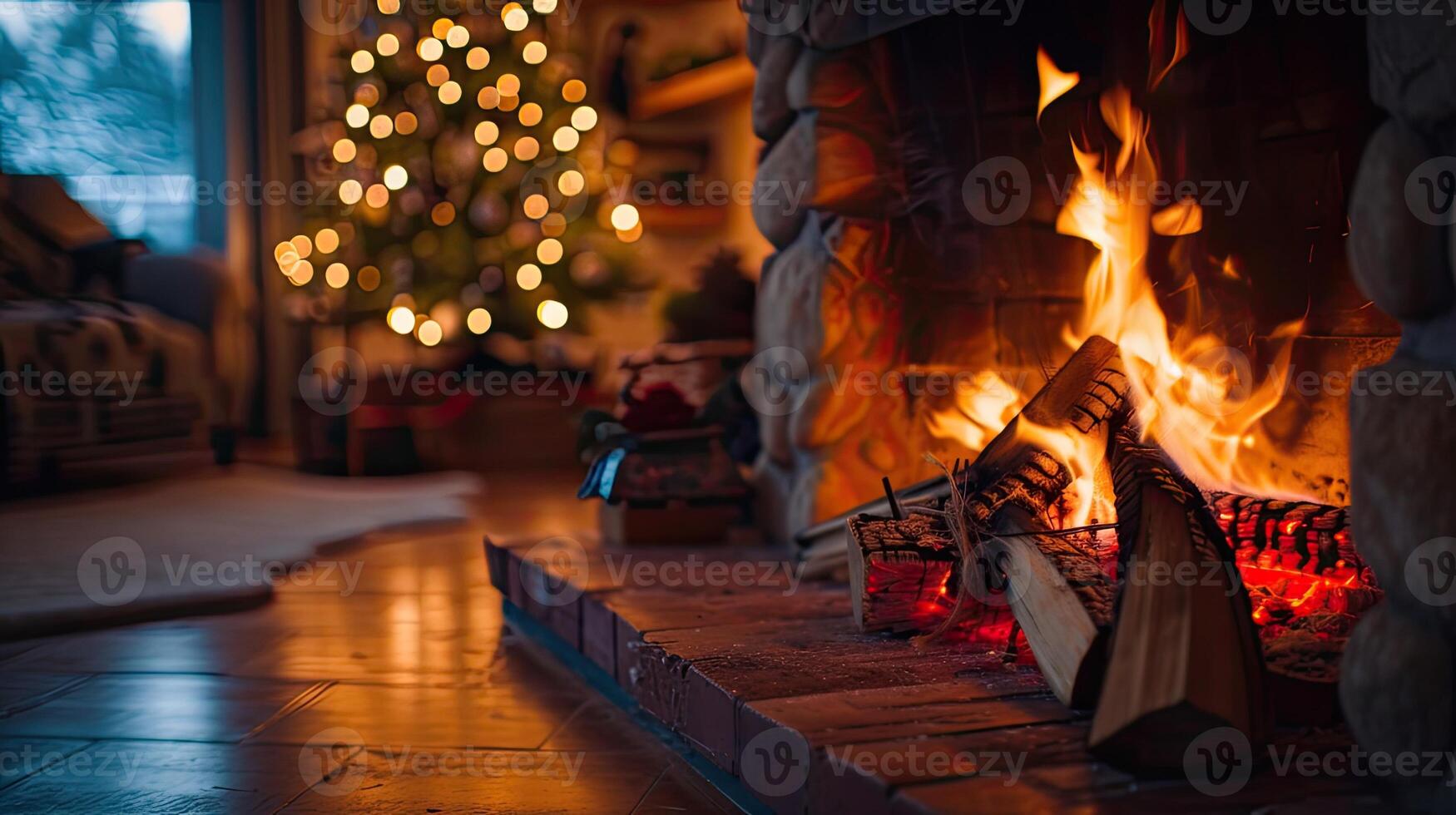 AI generated a winter evening with a photo of a crackling fire starting in the hearth, casting a soft glow and inviting ambiance into the home. Pro Photo