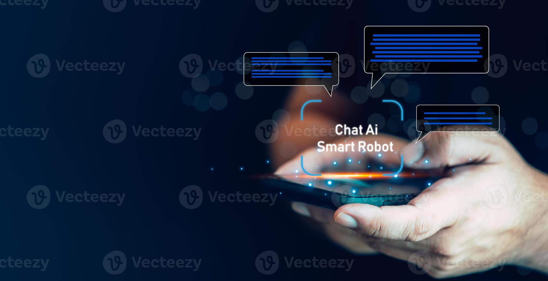 Man using the Ai to help and support work for chatbot, analysis using technology smart robot AI. Pro Photo