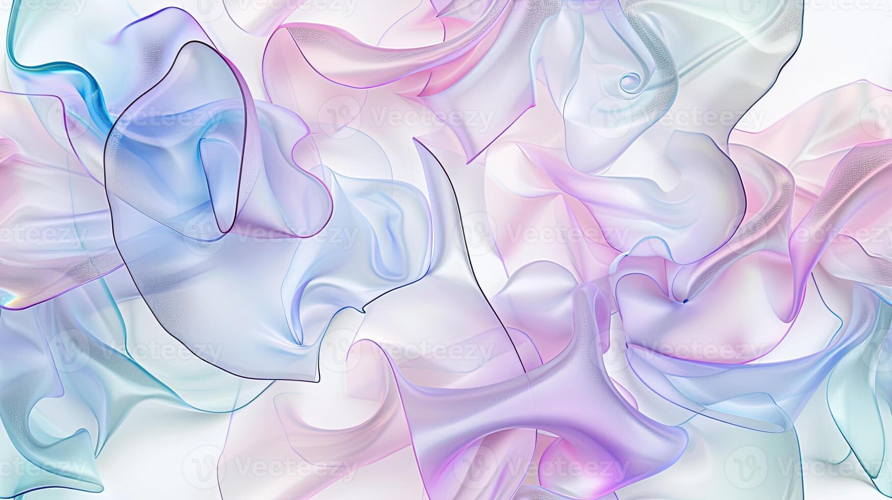 AI generated abstract minimalism with a realistic featuring translucent organic amorphous flat shapes overlapping in iridescent layers, set against a pristine white background. SEAMLESS PATTERN. Pro Photo