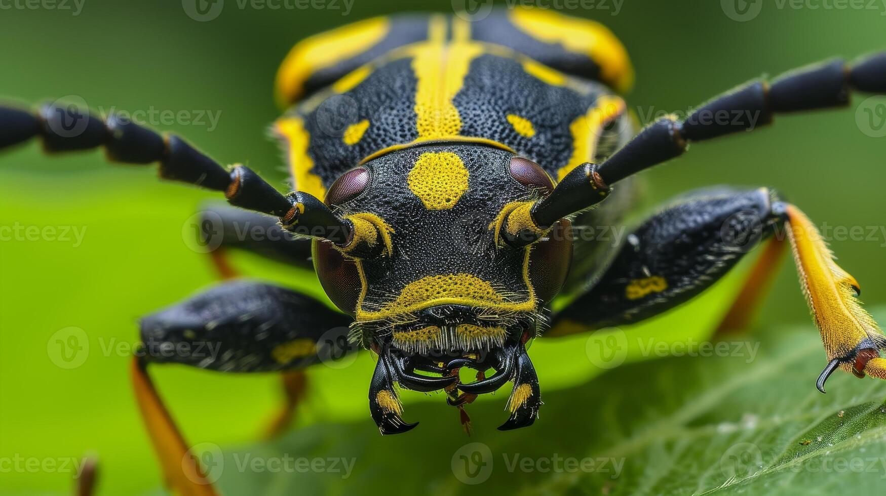 AI generated Close-up of a vibrant bug showcasing intricate patterns and bright colors, mesmerizing, Ai Generated. Pro Photo