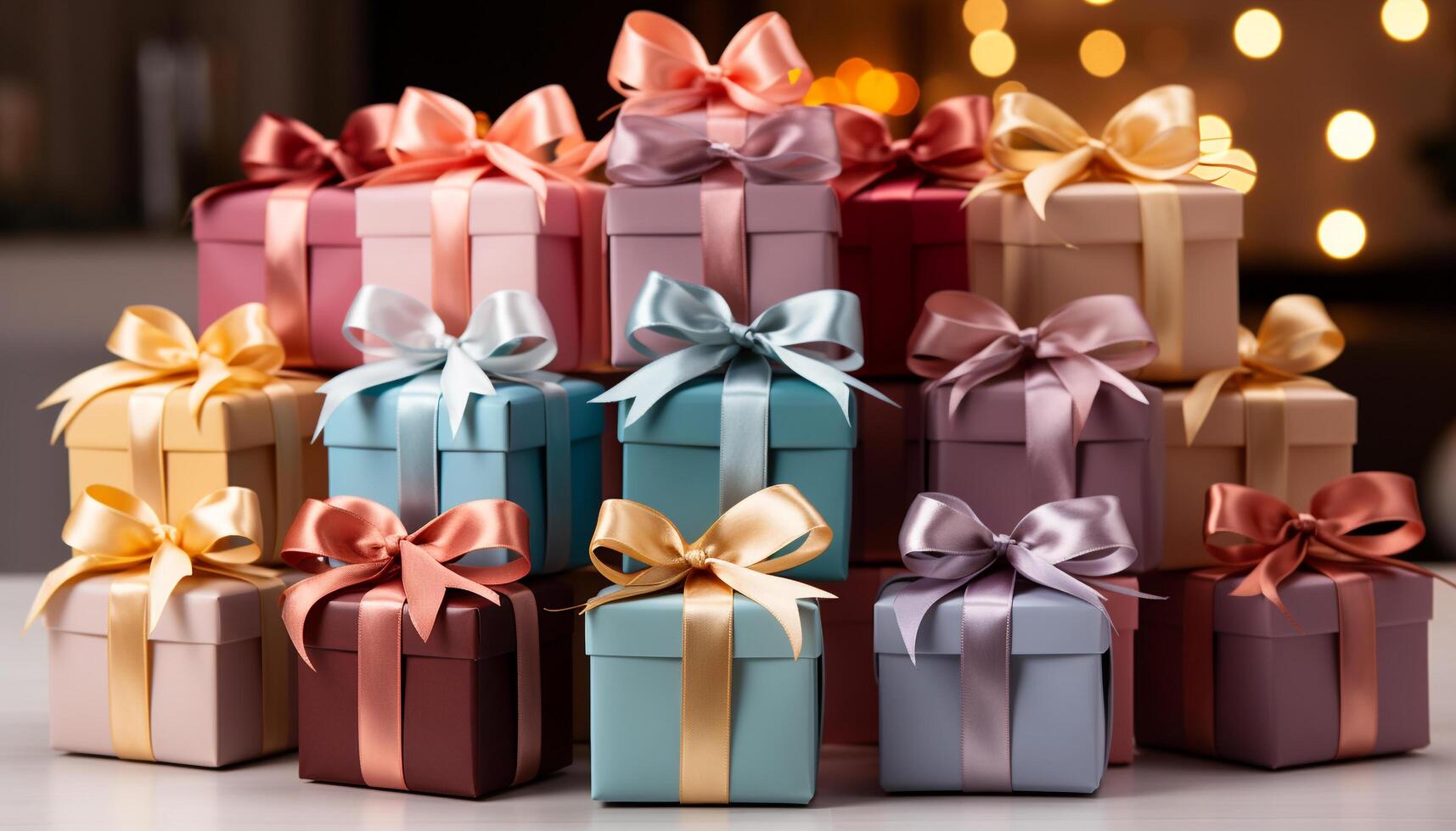 AI generated A stack of wrapped gift boxes in various colorful patterns generated by AI photo